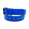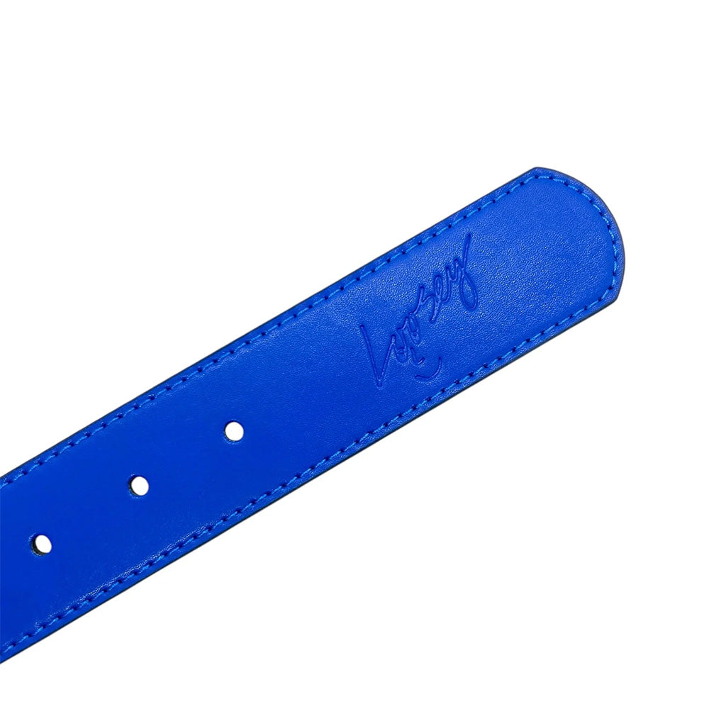 Blue faux leather belt with royal blue rhinestones and silver buckle.
