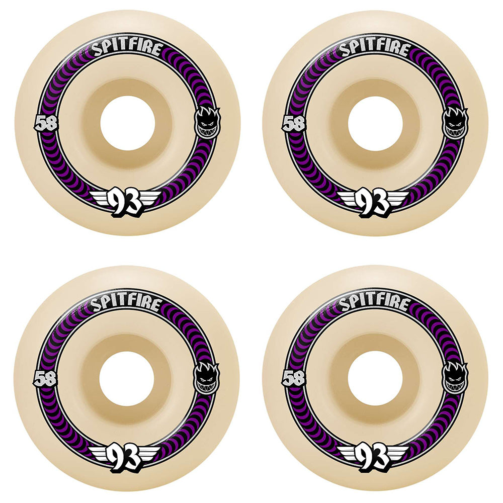 SPITFIRE FORMULA FOUR SOFT SLIDERS CLASSICS 93D 58MM•SOFT DURO WITH HIGH REBOUND COMPOUND ABSORBS MORE IMPACT & VIBRATIONS•HOLDS SPEED OVER ANY SURFACE