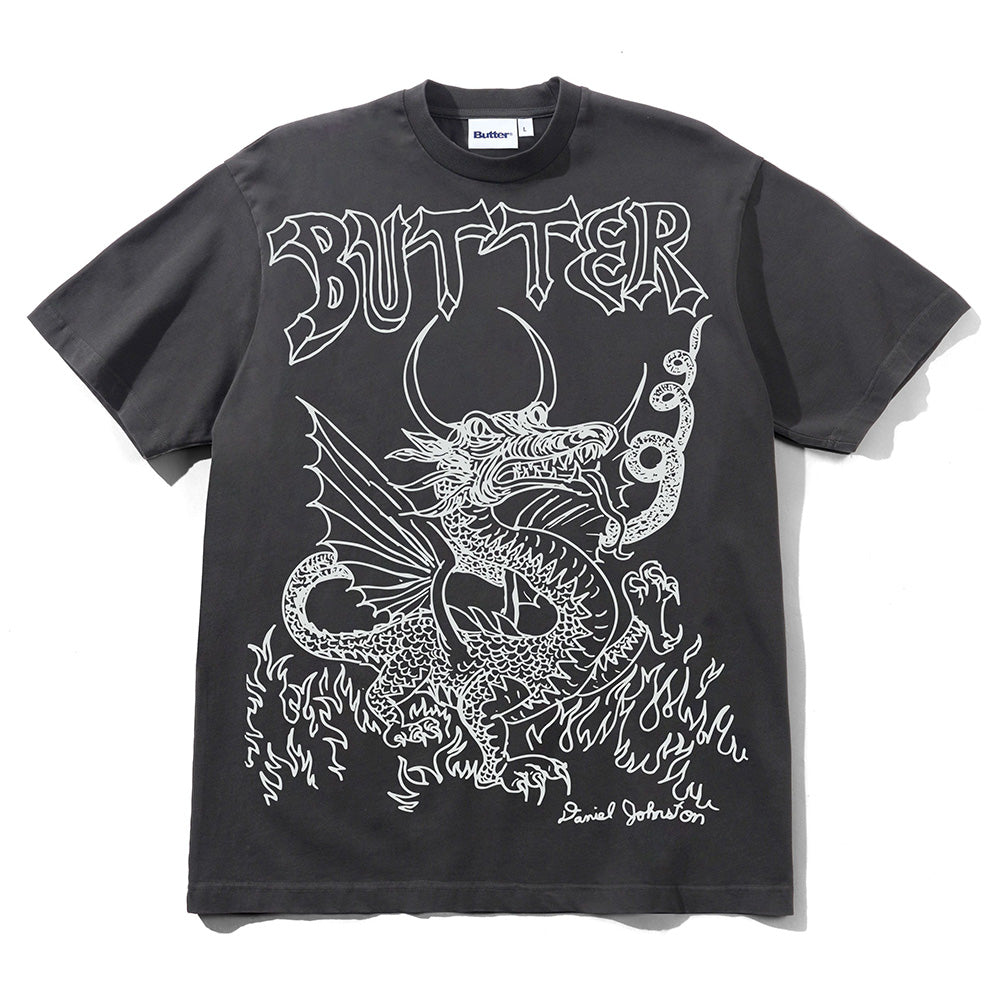 BUTTER GOODS X DANIEL JOHNSTON DRAGON TEE WASHED BLACK