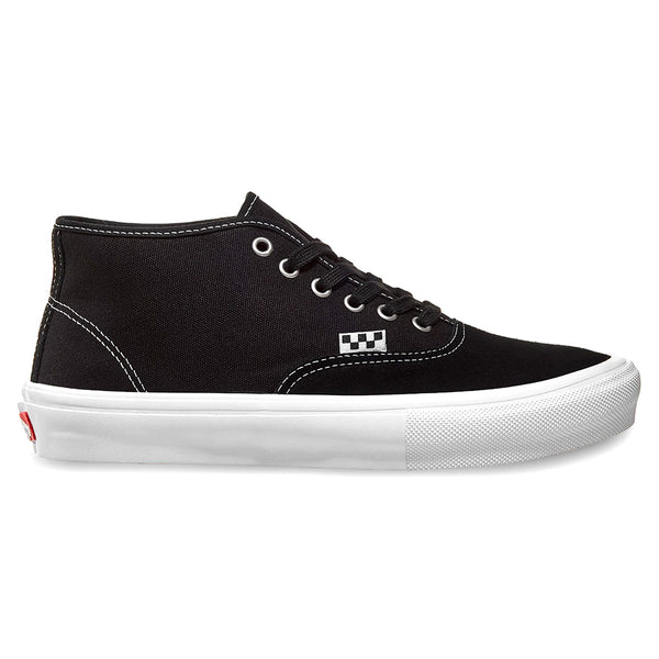 • The VANS SKATE AUTHENTIC in NAVY/TURTLEDOVE WHITE is a skater-designed shoe with white laces and sole, featuring red and white checkered detail near the eyelets and enhanced durability due to DURACAP™ technology. The VANS SKATE AUTHENTIC in navy and turtledove white are blue canvas sneakers with beige laces, white soles, a small red and white checkered detail, and enhanced durability thanks to DURACAP™ technology.
