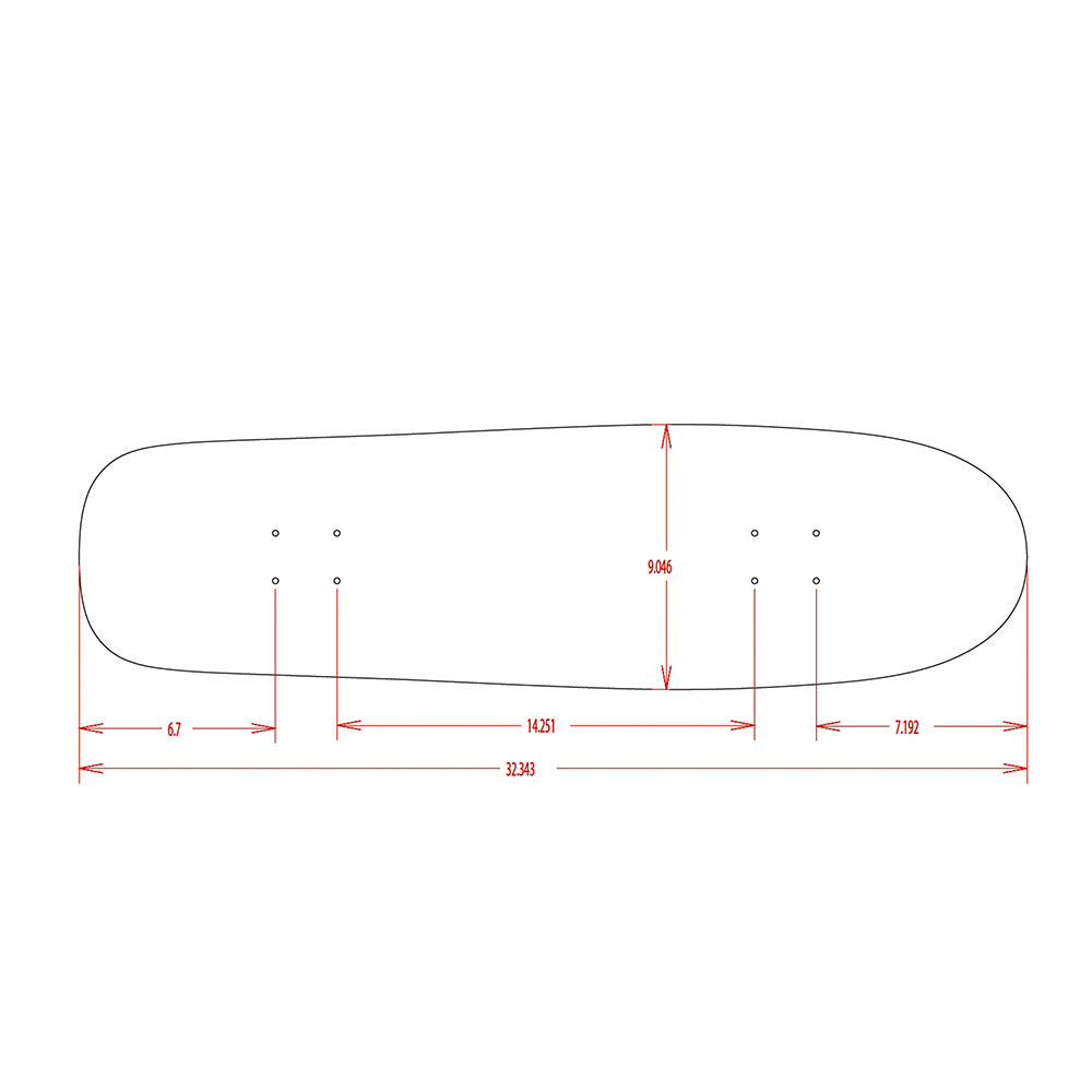 9.0" (At Widest Point) x 32.3" with 14.25" Wheelbase